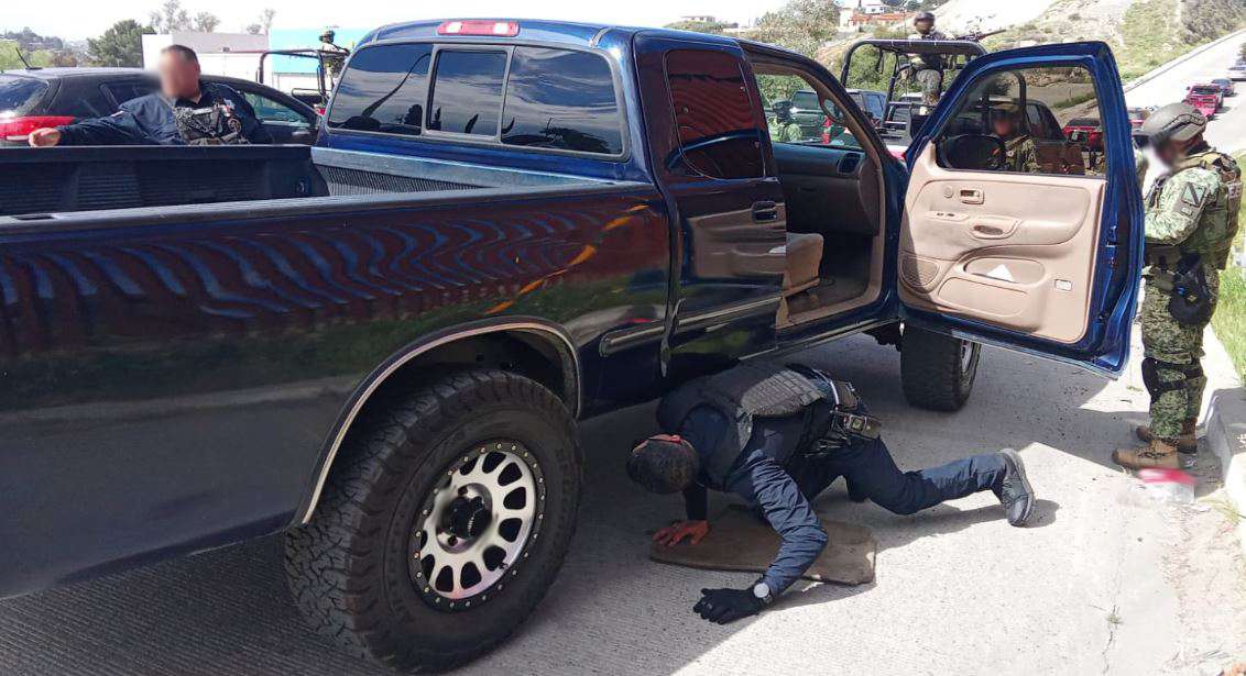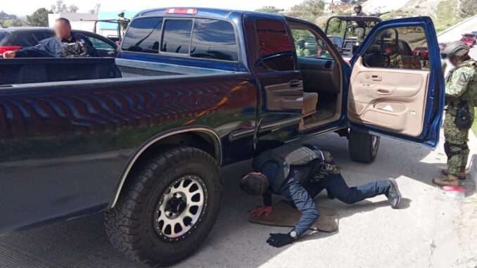 -En Tecate, elementos del Ejército Mexicano y Policía Municipal, en el puente fronterizo “Lázaro Cárdenas”, detuvieron a un hombre que viajaba en una camioneta con destino a Estado Unidos, aseguraron nueve kilos de cocaína, localizada en el compartimiento del filtro de aire del motor.