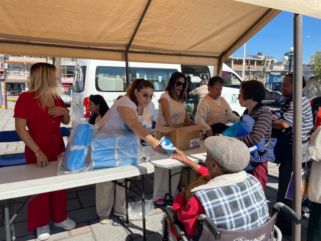 – En un esfuerzo conjunto para proteger la salud y el bienestar de nuestros adultos mayores, el presidente municipal de Amaxac, Mau Castañón, en colaboración con el delegado del IMSS Tlaxcala, Dr. Juan Carlos Corona de los Santos, la presidenta honorífica del DIF Municipal y las damas del voluntariado IMSS, encabezó la entrega de 200 chalecos, junto con cubrebocas y medicamentos preventivos ante la temporada invernal.