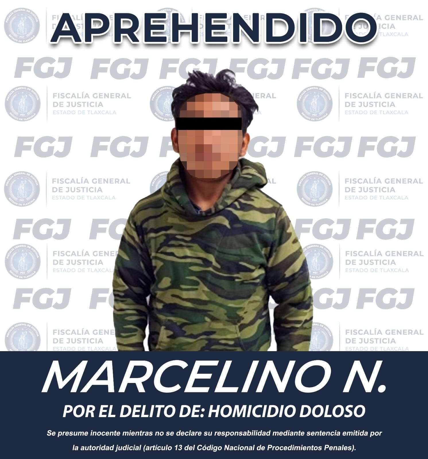 Derivado del hallazgo de los restos de la víctima, la FGJE inició las investigaciones y estableció la identidad y posible participación de Marcelino N., como probable responsable del delito de homicidio doloso, lo que permitió obtener una orden de aprehensión, la cual fue cumplimentada en el municipio de Tlaxcala.