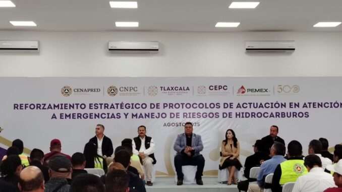 En representación del municipio, el coordinador Óscar Pulido asistió al curso “Reforzamiento estratégico de protocolos de actuación en atención a emergencias y manejo de riesgos de hidrocarburos”, realizado en la ciudad de Tlaxcala por PEMEX, CENAPRED, CNPC y Protección Civil Estatal.