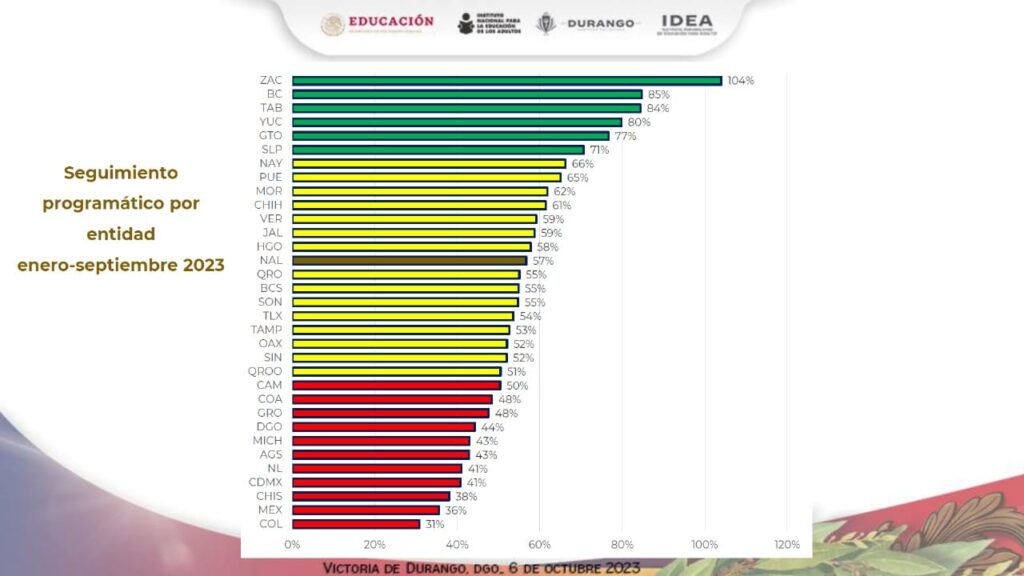 Lo anterior se dio a conocer durante la Segunda Sesión Ordinaria 2023 del Colegio de Directoras y Directores Generales de los Institutos Estatales de Educación para los Adultos y los Titulares de Unidades de Operación, evento que tuvo lugar en Durango.