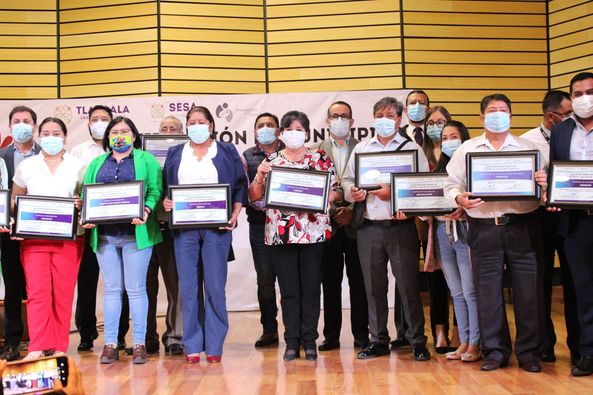 En la entrega que se llevó a cabo en el Centro de las Artes de Apizaco, estuvieron presentes, alcaldes, presidentes de comunidad que también recibieron certificado, regidores y coordinadores de salud en municipios.