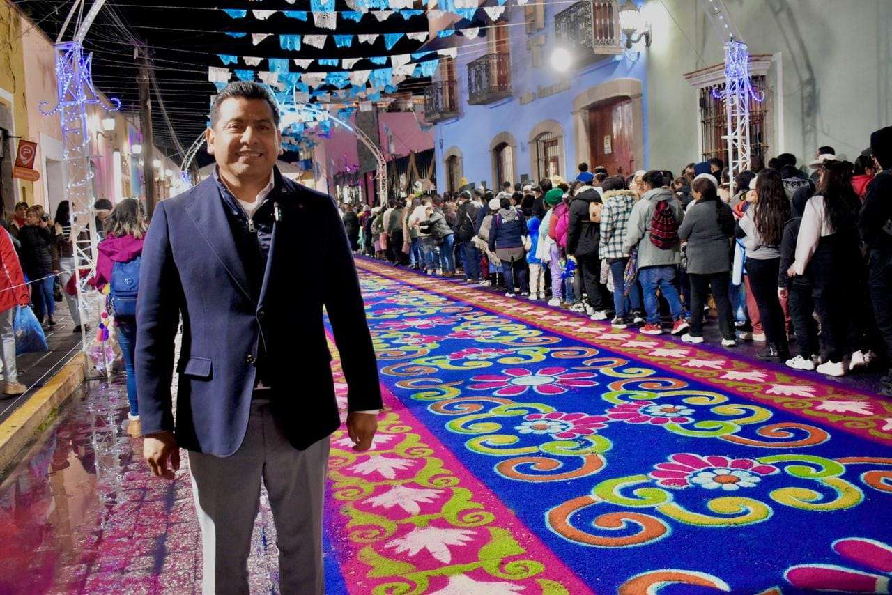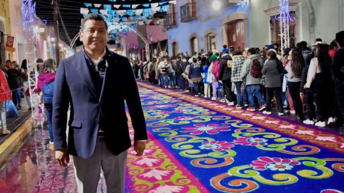 Durante su recorrido por las principales calles del municipio, Pérez Hernández expresó su admiración por la devoción y el trabajo colectivo de las familias huamantlecas, quienes, con gran esmero, elaboran los tradicionales tapetes de aserrín y flores en honor a la Virgen de La Caridad.
