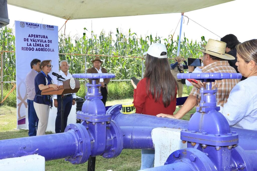 La gobernadora Lorena Cuéllar Cisneros abrió la válvula de dos líneas de riego agrícola de las Plantas de Tratamiento de Aguas Residuales (PTAR) en Tepetitla de Lardizábal, en las que se invirtieron 842 mil 581 pesos en beneficio de 17 mil 362 habitantes y agricultores.