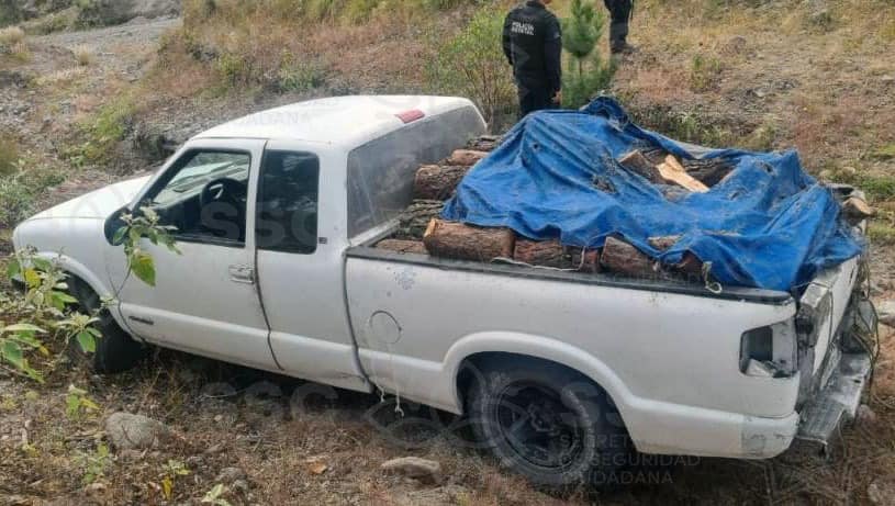 Ahí, ubicaron una camioneta Chevrolet, tipo S10, modelo 1995 y con placas del Estado de México, la cual transportaba material maderable; incluso se entrevistaron con el conductor de nombre Catalino N., de 35 años, quien no acreditó la posesión legal de la madera.