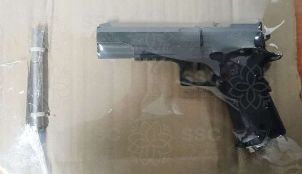 Durante la revisión, los uniformados localizaron entre las pertenencias del sujeto, quien se identificó como José Miguel N., de 25 años de edad, un objeto con las características propias de un arma de fuego, el cual, tras una inspección más detallada, se determinó que se trataba de una réplica tipo pistola.