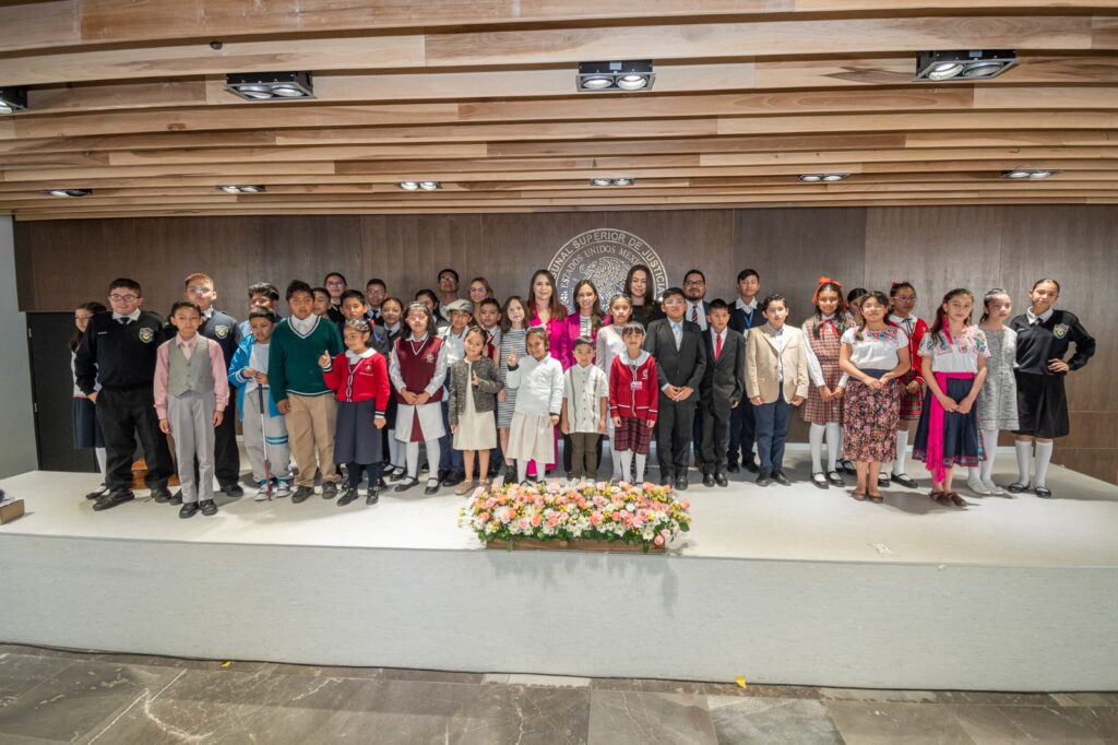 La magistrada presidenta del Tribunal Superior de Justicia y del Consejo de la Judicatura del Estado (TSJE-CJE), Anel Bañuelos Meneses, refirió que la apertura de estos espacios de diálogo donde las infancias comparten sus experiencias, exigencias y dan voz a las causas justas, darán la pauta para trabajar a favor de sus derechos, así como asegurar una infancia feliz para un desarrollo pleno e integral.