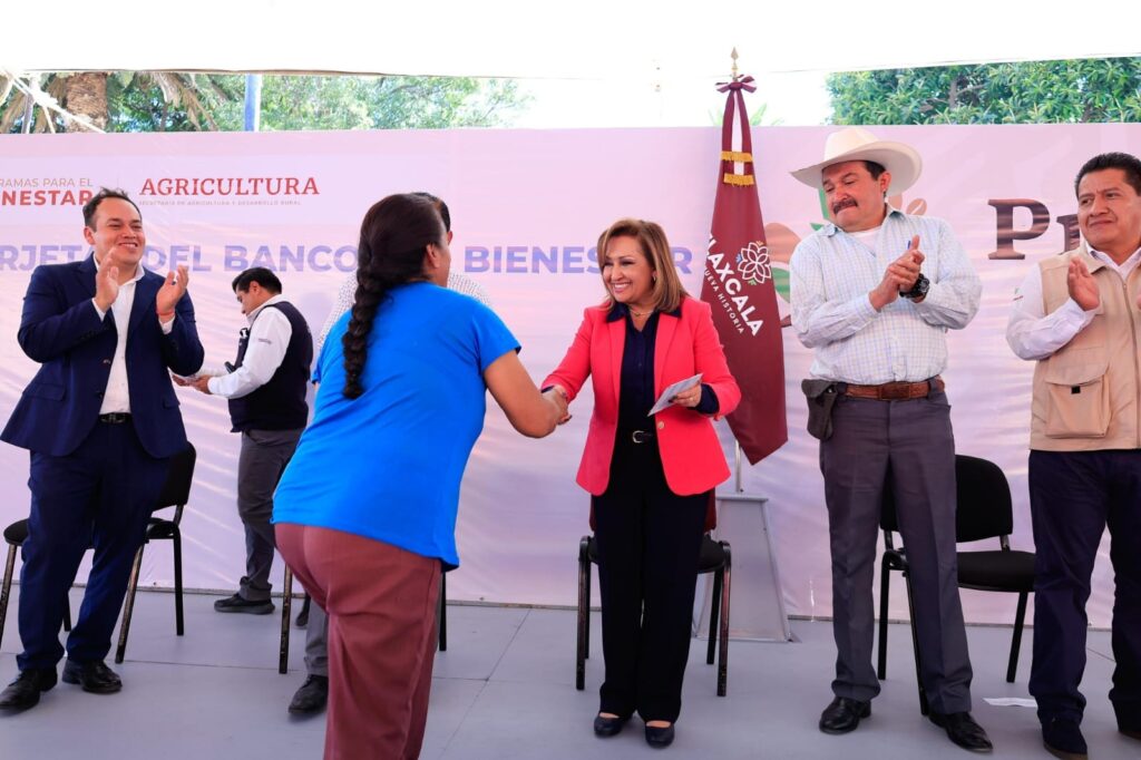 La titular del Ejecutivo local, Lorena Cuéllar Cisneros encabezó la entrega de 250 tarjetas del Banco del Bienestar a campesinos de Natívitas, por las cuales recibirán recursos del programa de Producción para el Bienestar con una inversión de 5 millones 600 mil pesos solo para este municipio.