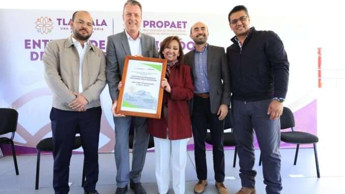 La gobernadora, Lorena Cuéllar Cisneros entregó certificados de Desarrollo Sostenible por el Bienestar a 24 instituciones públicas y privadas, a través del Programa de Auditoría Ambiental de la Procuraduría de Protección al Ambiente del estado de Tlaxcala (Propaet).