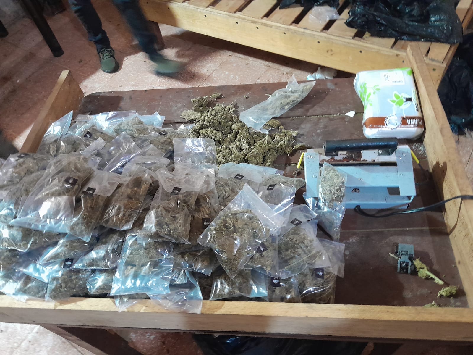 Cabe destacar que, desde la cochera, los militares observaron que en el interior del inmueble había armas y droga, por lo que dejaron el lugar bajo custodia y posteriormente, luego de obtener una orden de cateo del Juez de Control, la Policía Federal Ministerial (PFM), con apoyo de peritos de la institución, ambos de la Agencia de Investigación Criminal (AIC), localizaron en el domicilio 756 kilos 603 gramos de marihuana dosificada en mil 516 envoltorios.