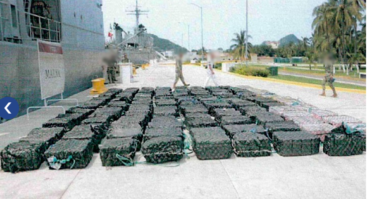 Mientras marinos resguardaron dos de los navíos, inició la persecución de los 15 hombres que duró aproximadamente una hora, hasta que fueron detenidos; al realizar una inspección, se aseguraron dos cubitanques, 23 bidones con petrolífero (gasolina regular), 39 bidones vacíos, 126 bultos que, tras realizar y tener el resultado del dictamen final para determinar el peso exacto, resultó en cuatro toneladas 931.70 kilogramos de cocaína, y tres embarcaciones menores con motores fuera de borda.
