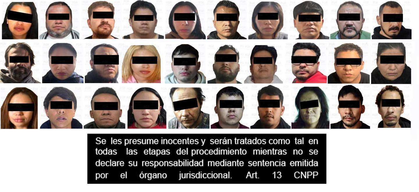 La Fiscalía General de la República (FGR) obtuvo vinculación a proceso en contra de 30 personas por su posible participación en los delitos de contra la salud en su modalidad de posesión con fines de venta y violación a la Ley Federal de Armas de Fuego y Explosivos, en su modalidad de permanencia.