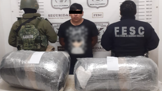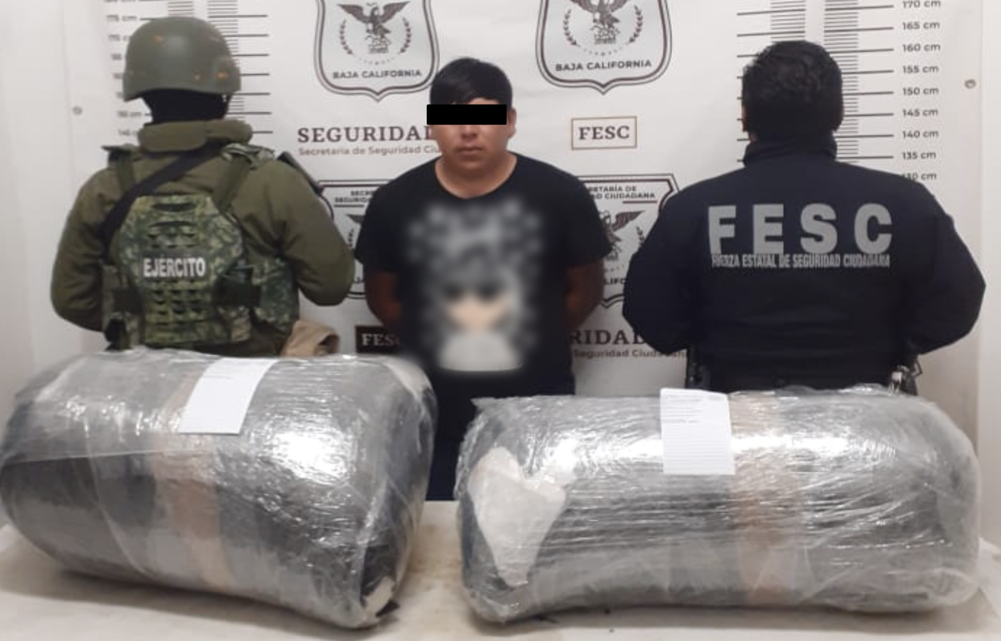 En Ensenada, se detuvo a una persona, se aseguraron 37.2 kilos de marihuana y un vehículo.