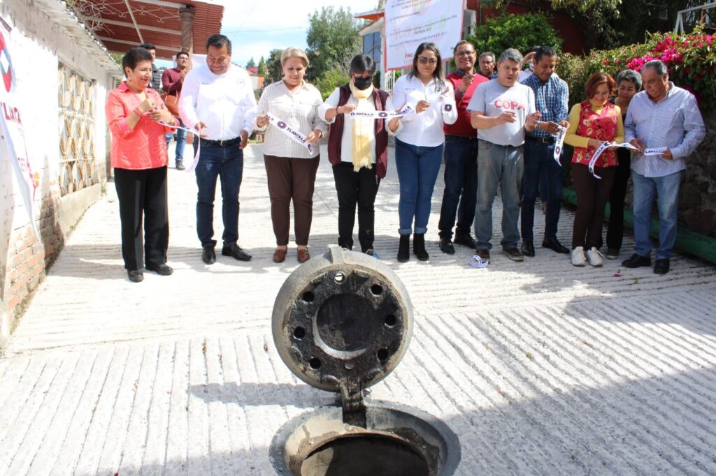• La presidenta municipal de Tlaxcala, entrega una red de drenaje sanitario rehabilitada y la construcción de pavimento de adoquín