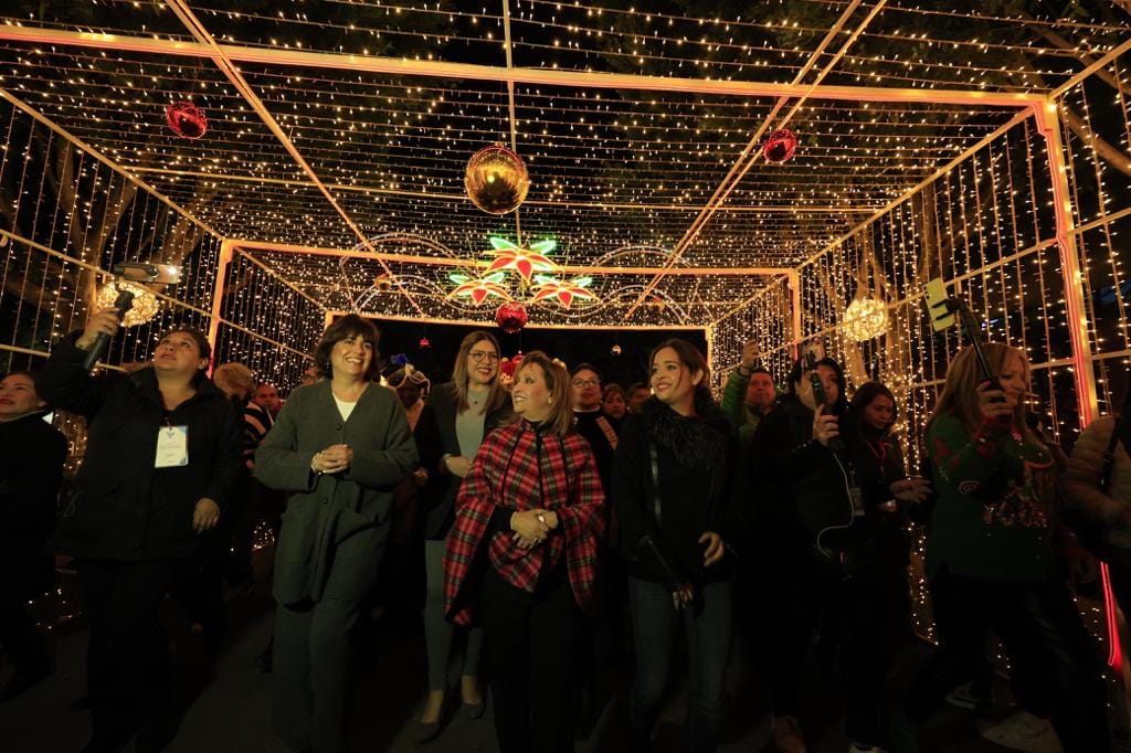 Tras el corte del listón inaugural y encendido de la iluminación Navideña, la gobernadora acompañada de autoridades recorrió algunas áreas como el nacimiento monumental, el pasillo de los regalos y el túnel de luz, además presenció el espectáculo de drones que proyectó en el cielo imágenes de Santa Claus, un árbol de navidad, un muñeco de nieve y la estrella de belén, por mencionar algunas.