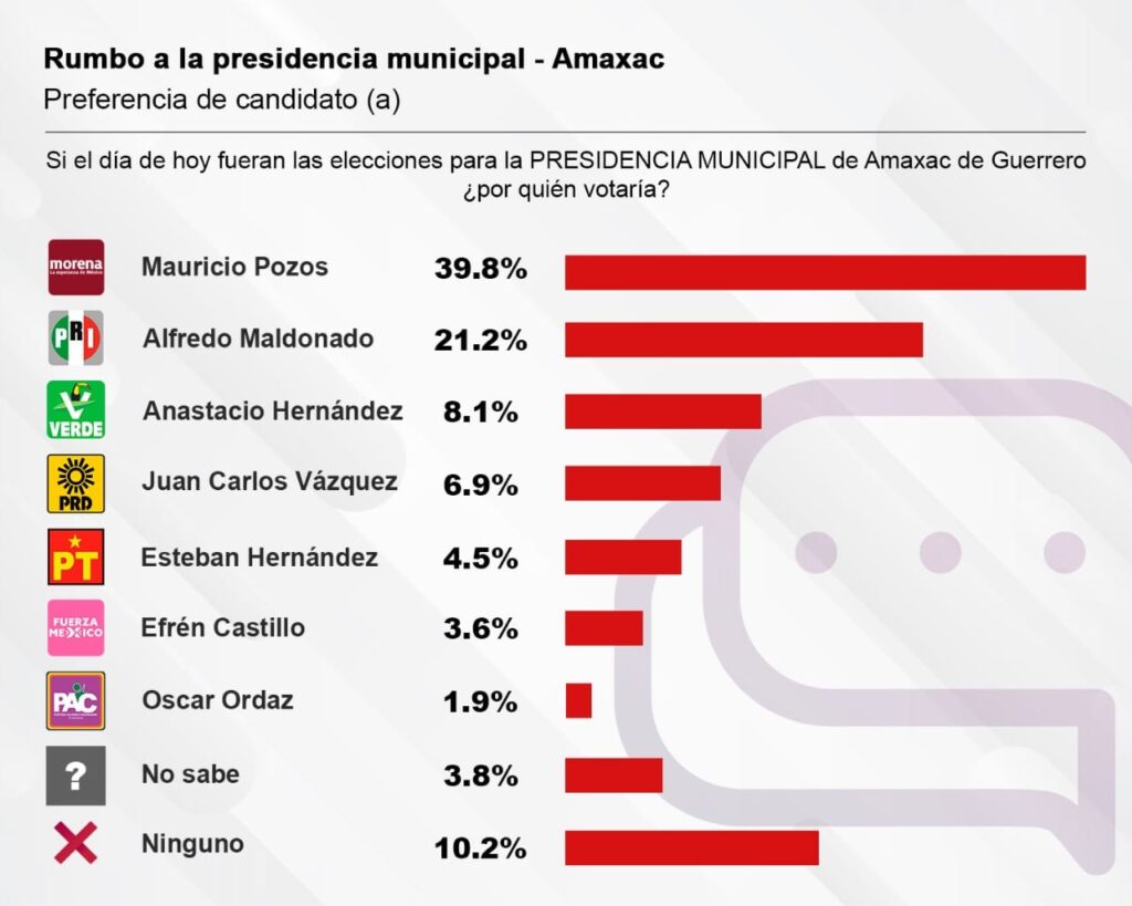 Aún cuando no se tiene una fecha específica para el inicio de campaña para los candidatos de los diferentes partidos a las alcaldías de los 60 municipios, una encuesta reveló el posicionamiento de los diferentes candidatos a la presidencia municipal de Amaxac, rumbo a la elección del 2 de junio.