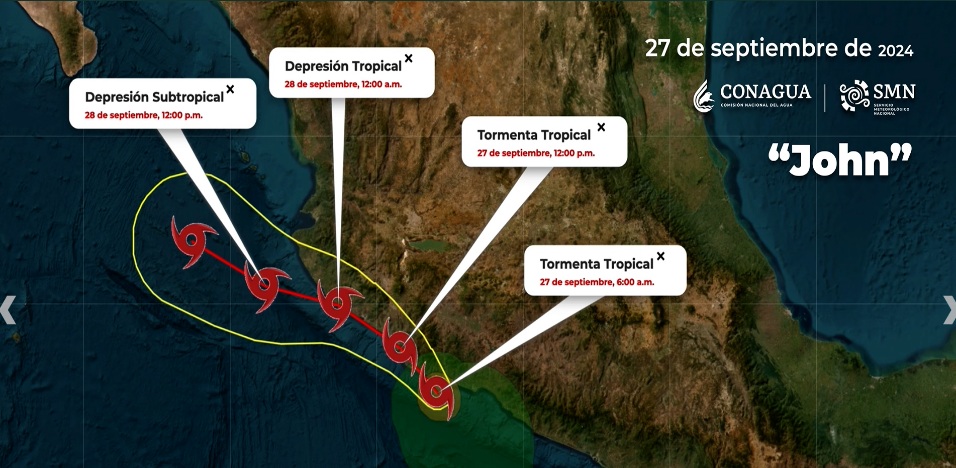 A las 09:00 horas, tiempo del centro de México, John se localizó a 50 kilómetros (km)