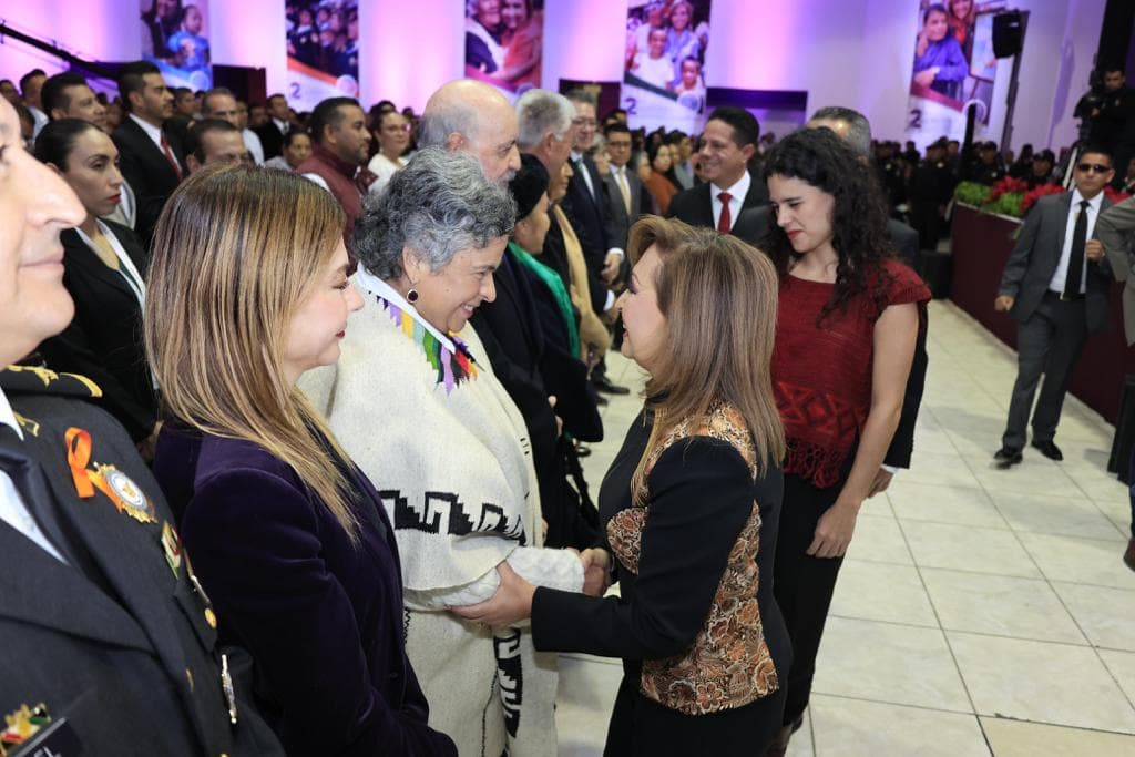 La gobernadora subrayó que en seguridad también fueron cumplidos los compromisos al poner en marcha el Centro de Control, Comando, Comunicaciones, Cómputo, Coordinación e Inteligencia (C5i), un espacio de alta tecnología policial al servicio del estado, la colocación de cámaras de Reconocimiento Facial en centros comerciales y lugares públicos de gran afluencia, así como la instalación de 13 Centros de Comando (C2) conectados al C5i en municipios. Mientras que en salud, enfatizó que «hoy contamos con la más amplia cobertura de servicios de salud gratuitos, sin precedente alguno, rehabilitamos 10 hospitales y 130 centros de salud, se puso en marcha la Unidad de Hemodinamia, equipamos a los hospitales con 7 mil 800 aparatos médicos nuevos y también cumplimos con la Clínica de las Emociones».