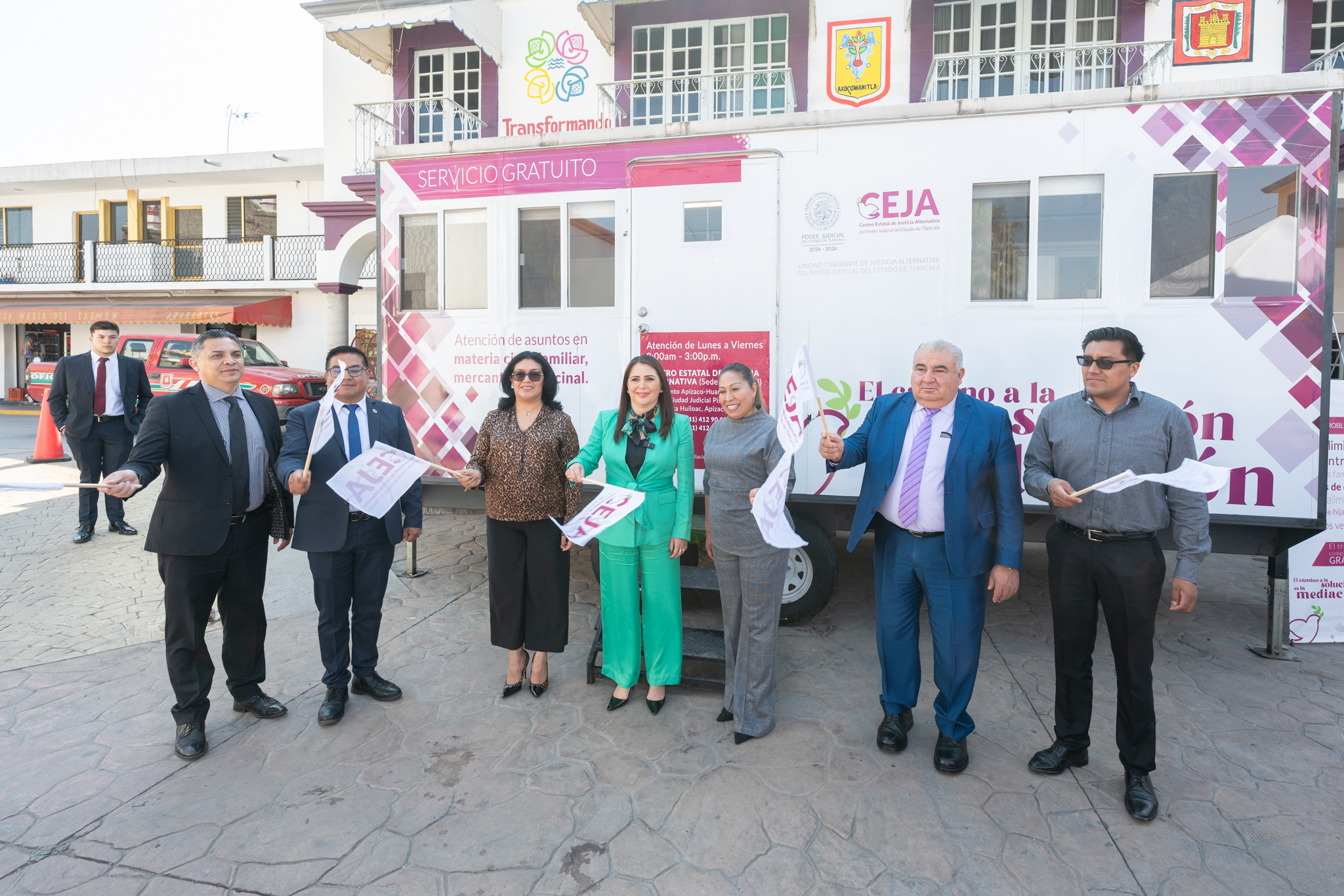 Con el objetivo de brindar un modelo de justicia amigable y en un menor tiempo, este día, la presidenta del Poder Judicial, Anel Bañuelos Meneses y la presidenta municipal de San Lorenzo Axocomanitla, Gabriela Hernández Montiel, dieron el banderazo de inicio de actividades de la Unidad Móvil del Centro Estatal de Justicia Alternativa, la cual estará en este municipio hasta el próximo 07 de marzo.