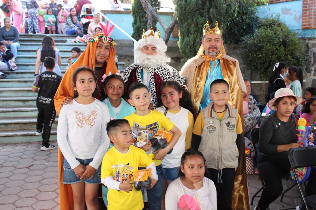Las niñas y los niños capitalinos, de ambas localidades, pudieron disfrutar de un momento de alegría con los tres Reyes Magos, apoyados por personal del Sistema Municipal DIF.