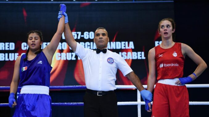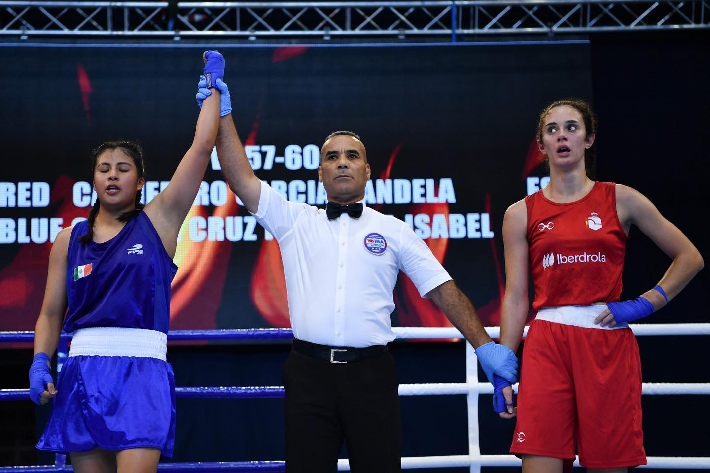 La primera participación nacional fue de la originaria del estado de Oaxaca, Fernanda Isabel Corona Cruz, quien venció por decisión dividida (3-2) a la española Candela Carnerero García en la categoría de los 60 kilógramos femenil con tarjetas de 29-28, 28-29, 29-28, 28-29 y 27-29.