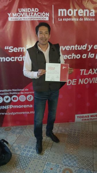 El empresario Miguel Sánchez Águila se registró al proceso interno de selección de la candidatura a la presidencia municipal de San Luis Teolocholco por el partido Movimiento de Regeneración Nacional (Morena).