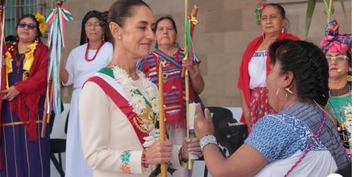 * La Presidenta de México recibió el Bastón de Mando de manos de mujeres representantes de los pueblos originarios