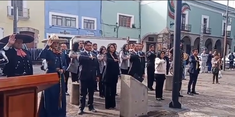 En el marco del CCXIV Aniversario de inicio de la lucha de Independencia de México, el H. Ayuntamiento de Papalotla de Xicohténcatl encabezado por el Dr. Sergio Lara Muñoz, Radai Hernández titular del Instituto Estatal de Penciones Civiles y la Asociación de Charros de Tlaxcala, izaron la bandera nacional en el Zócalo de la ciudad de Tlaxcala.