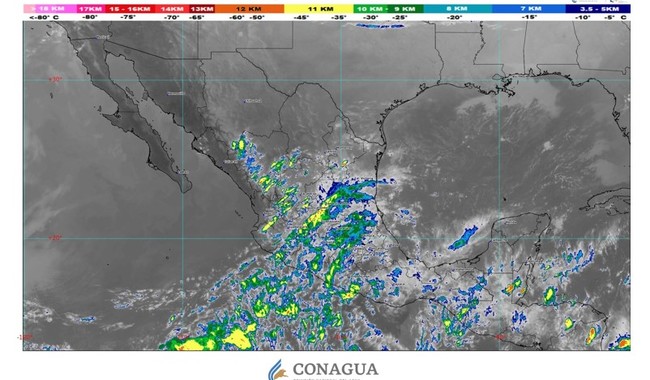 Se prevén lluvias puntuales muy fuertes en Hidalgo, Oaxaca, Puebla, Querétaro, San Luis Potosí, Tamaulipas y Veracruz; fuertes en Chiapas, Quintana Roo, Tabasco y Zacatecas; intervalos de chubascos en Campeche, Chihuahua, Coahuila, Durango, Estado de México, Guanajuato, Nuevo León y Yucatán, así como lluvias aisladas en Aguascalientes, Ciudad de México, Colima, Jalisco, Michoacán, Morelos, Nayarit y Tlaxcala.