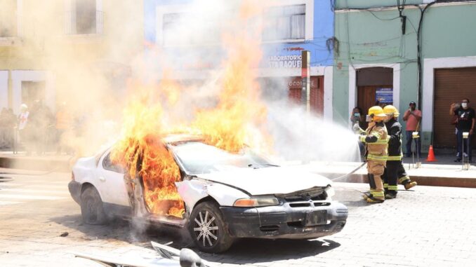 De la misma manera, en el primer cuadro de la ciudad se reportó la colisión de un vehículo, cuyos dos pasajeros fueron salvados por la Unidad de Rescate Urbano de la Cruz Roja con el equipo hidráulico (quijadas de la vida); la unidad vehicular también se incendió, por lo que a través de una motobomba se procedió a mitigación.