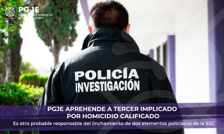 La Procuraduría General de Justicia del Estado #PGJE a través de agentes de la Policía de Investigación logró la aprehensión de Miguel N., por el delito de homicidio calificado.