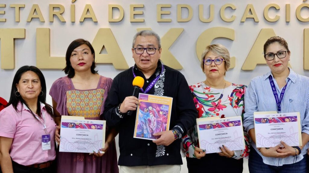 Autoridades de la Secretaría de Educación Pública del Estado y de la Unidad de Servicios Educativos del Estado de Tlaxcala (SEPE-USET) presentaron el prototipo del Libro de Texto «Apuntes para prevenir y erradicar la trata de personas con fines de explotación sexual en niñas y mujeres», el cual está dirigido a alumnos de segundo grado de secundaria y tercer semestre de educación media superior.