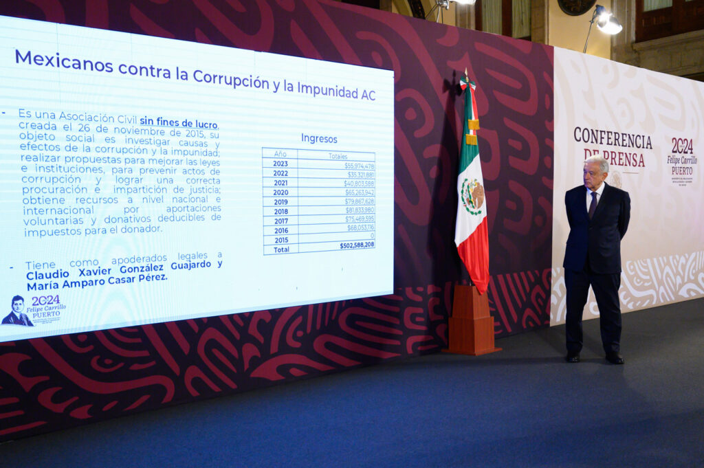 Los ingresos totales que Mexicanos contra la Corrupción y la Impunidad reporta desde 2015 hasta 2023 acumulan 502 mil 588 millones de pesos. La organización tiene como apoderados legales a Claudio Xavier González Guajardo y María Amparo Casar Pérez.