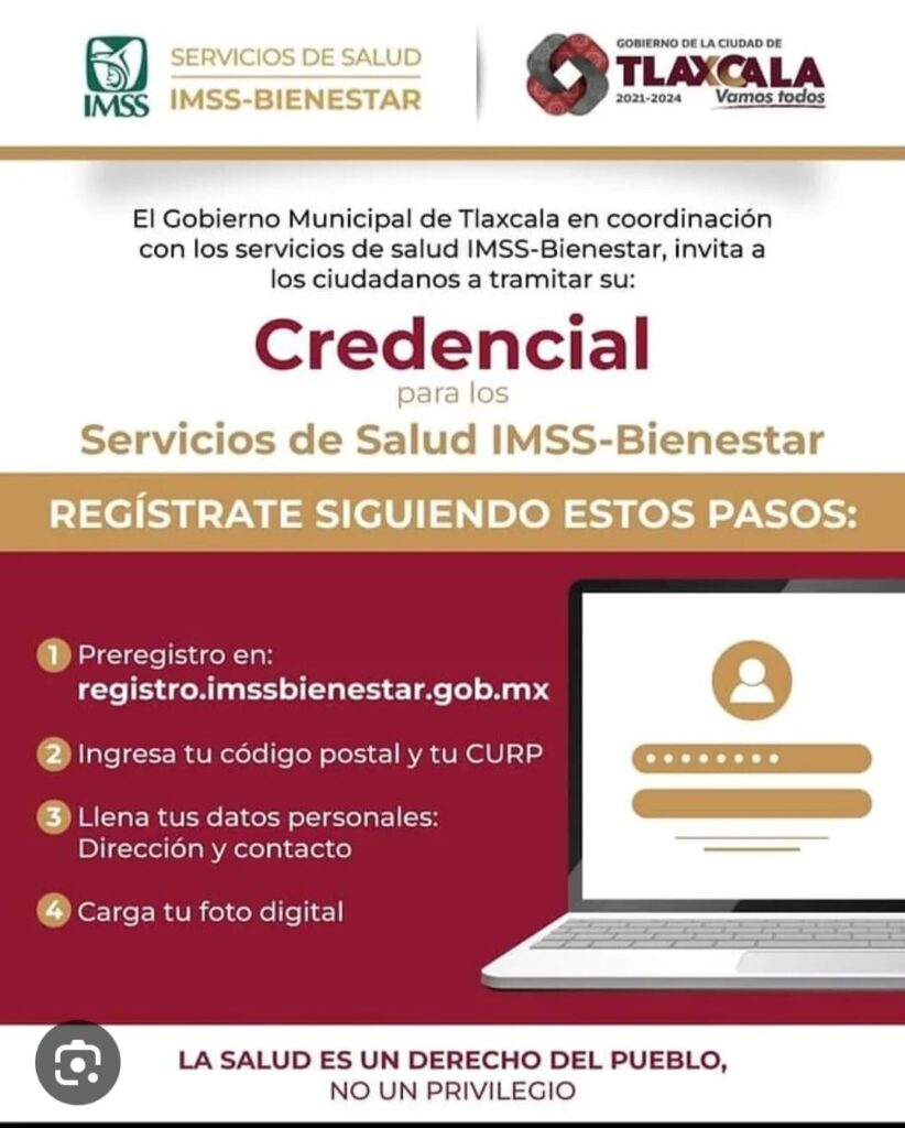 El Ayuntamiento de Tlaxcala, coadyuva a través de la Dirección de Desarrollo Humano, en el proceso de registro para que capitalinos puedan obtener su credencial de los servicios de salud IMSS – Bienestar.