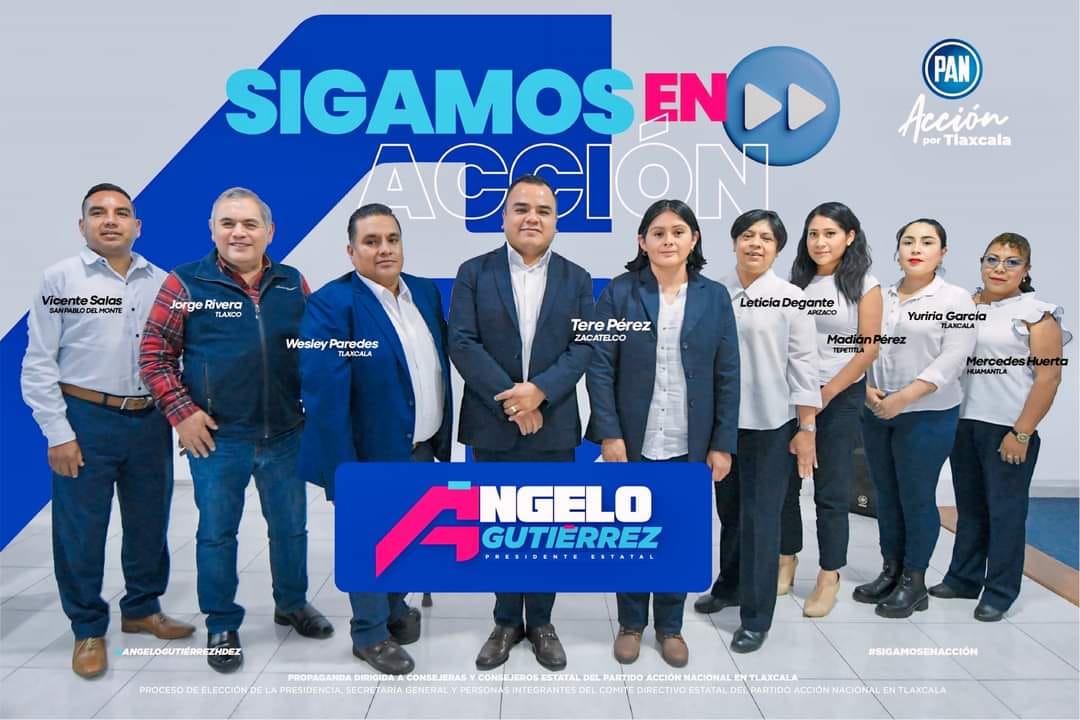 El Comité EjecutivoNacional (CEN), del Partido Acción Nacional (PAN), ratificó la elección de la Presidencia a Ángelo Gutiérrrez Hernández, Secretaría General e Integrantes del Comité Directivo Estatal en Tlaxcala, para el periodo 2024 – al segundo semestre de 2027.