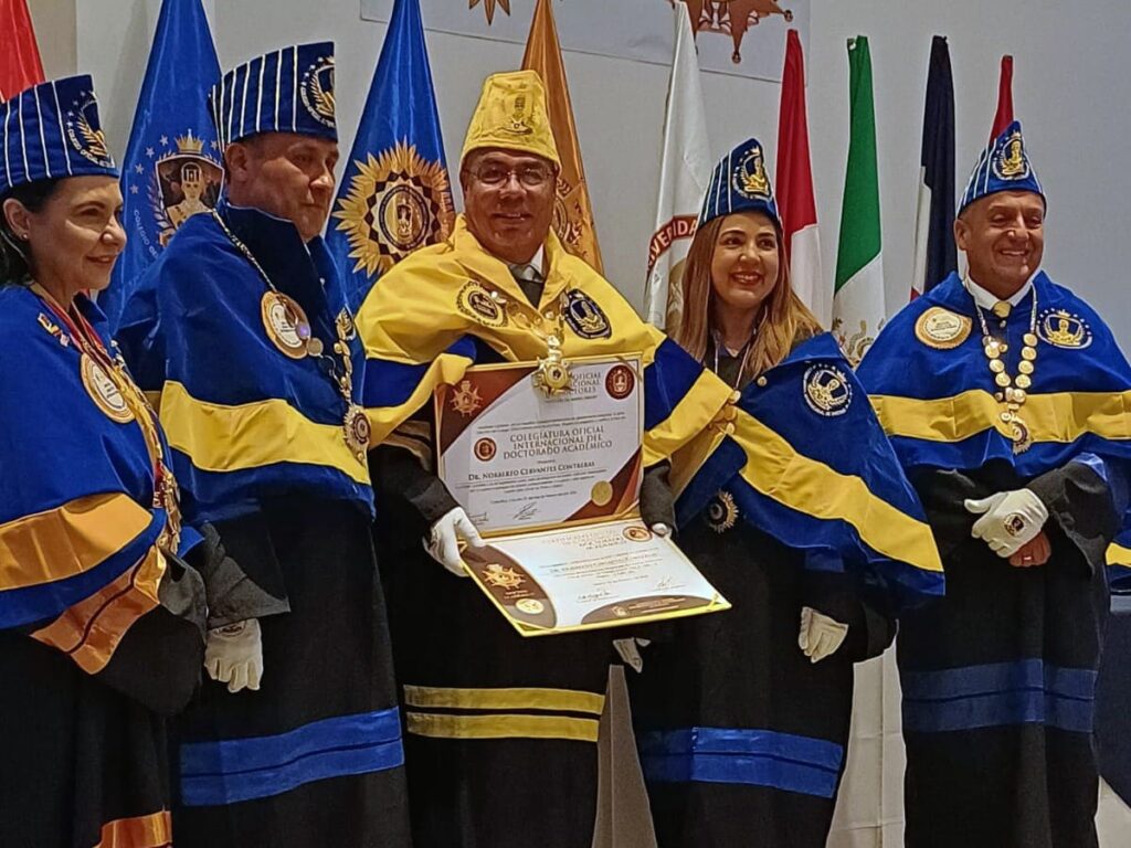 El director general del Colegio de Estudios Científicos y Tecnológicos del Estado (CECyTE), Norberto Cervantes Contreras, fue honrado con el reconocimiento “Doctor Académico” durante la ceremonia de colegiación celebrada por el Colegio Oficial Internacional Doctores del Mundo Unidos, en la ciudad de San José, Costa Rica.