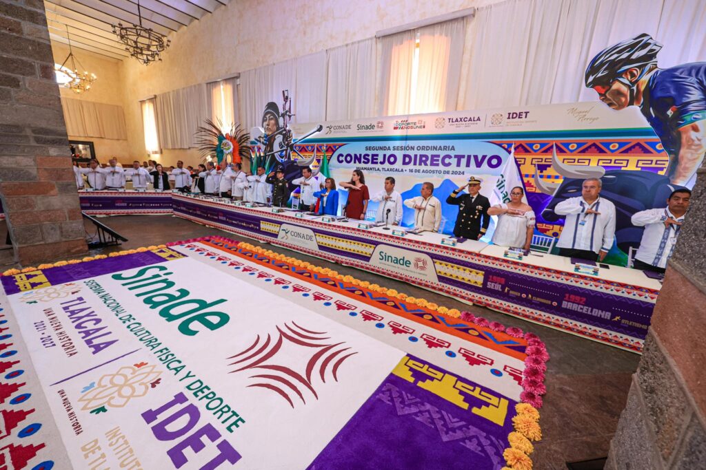 “Tlaxcala se ha vuelto en los últimos años un referente de grandes eventos y de grandes inspiraciones para niñas, niños y jóvenes, no solamente con los eventos, sino también con la generación de infraestructura que los hace soñar, los hace pensar en la grandeza de su tierra y en la inspiración de nuestro México”, sostuvo la directora de la Comisión Nacional de Cultura Física y Deporte (Conade), Ana Gabriela Guevara Espinoza, quien, en compañía de la gobernadora Lorena Cuéllar Cisneros, inauguró los trabajos de la segunda sesión ordinaria del consejo directivo del Sistema Nacional de Cultura Física y Deporte (Sinade), que se lleva a cabo en la Hacienda Soltepec, de Huamantla.