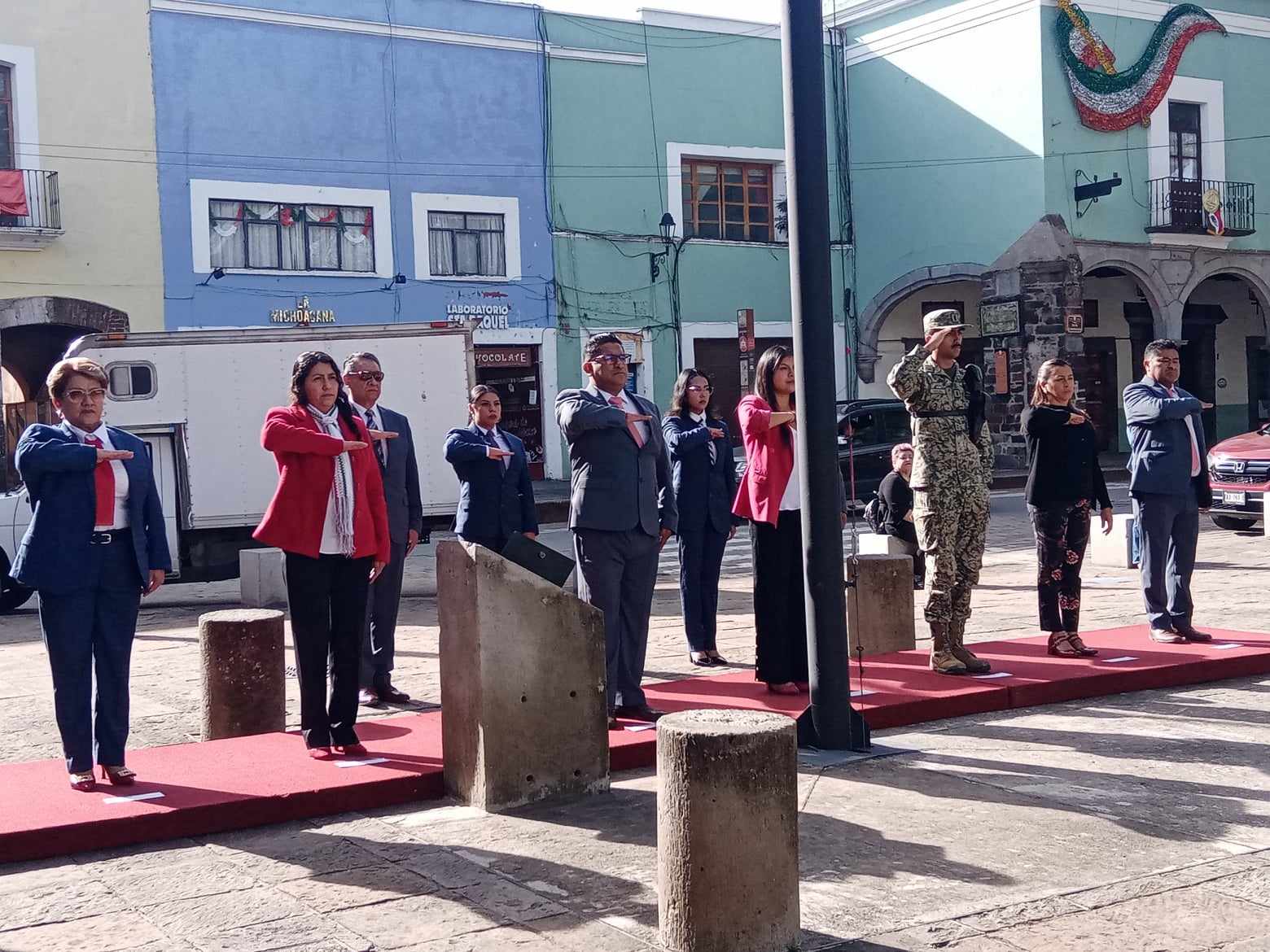 En este acto cívico, rindieron honores a los símbolos patrios en el Zócalo de la Ciudad de Tlaxcala y recordaron los terremotos de 1985 y 2017, en el que murieron miles de mexicanos, por ello la bandera fue izada a media asta y recordaron que el 19 de septiembre es el Días Nacional de Protección Civil.
