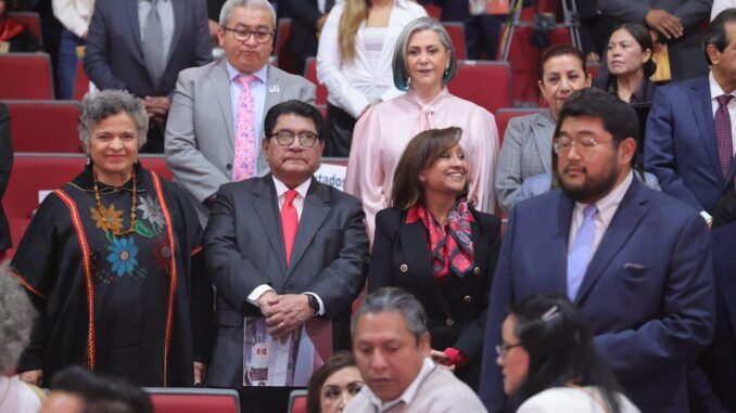 La gobernadora Lorena Cuéllar Cisneros asistió al tercer informe de actividades 2024-2025 del rector de la Universidad Autónoma de Tlaxcala (UATx), Serafín Ortiz Ortiz.
