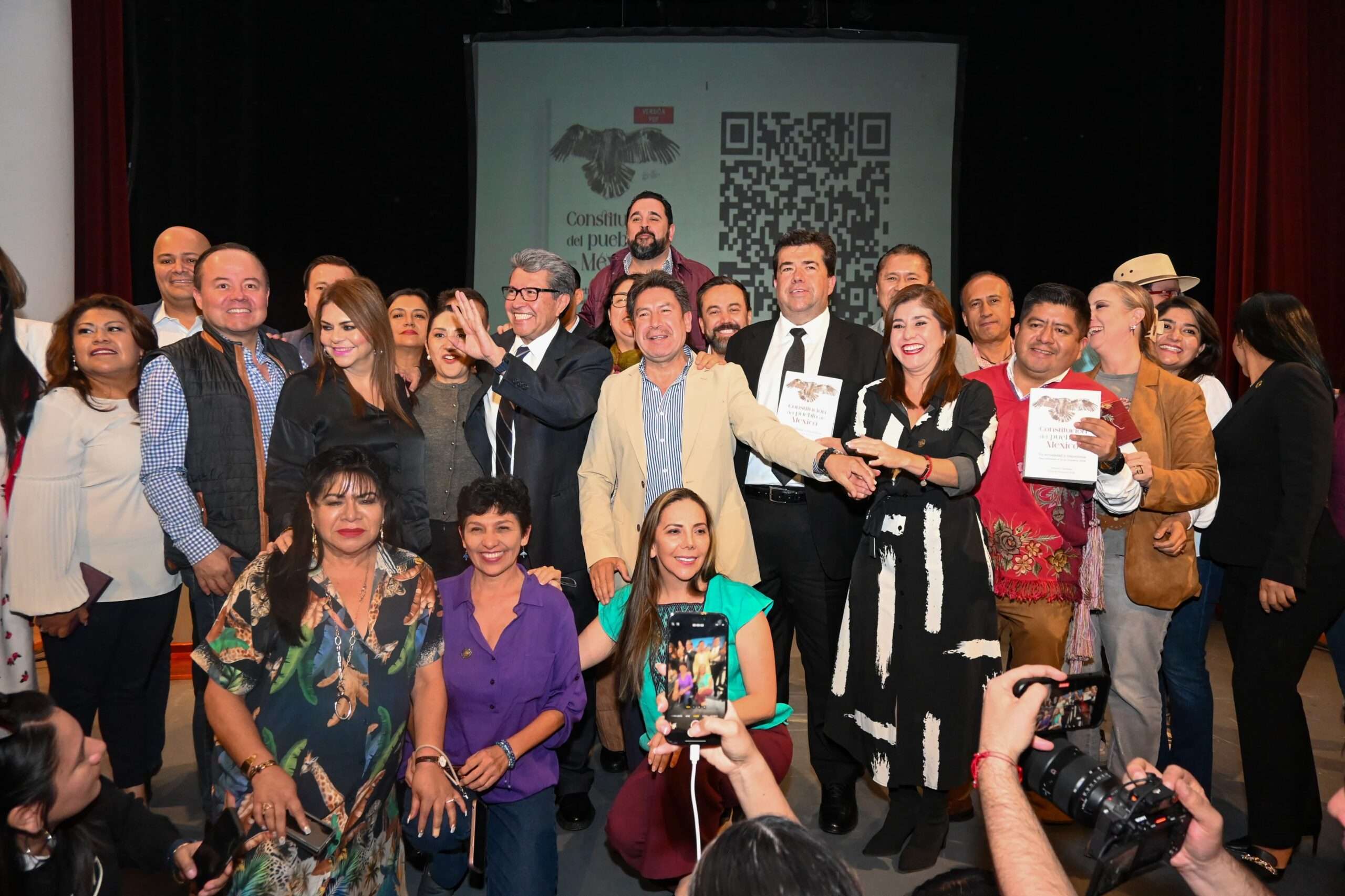 Acompañado por el Coordinador de Operación Política Pedro Haces Barba, 64 Diputadas y Diputados Federales de diversos estados de la República, reunidos en el Teatro Xicohténcatl que fue la sede que engalanó este magno evento, como un hecho sin precedente en la historia política de Tlaxcala.