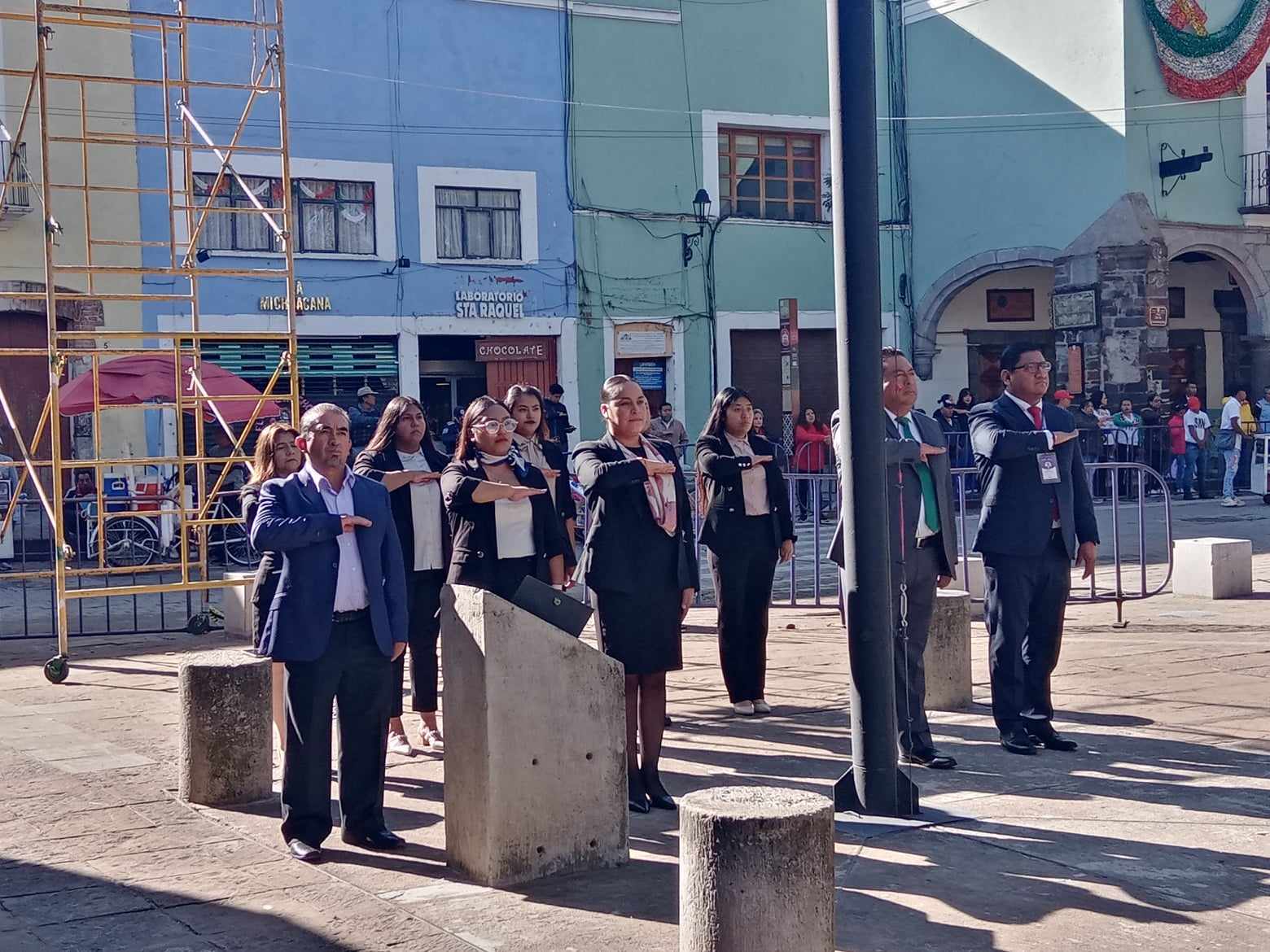 Rindieron San José Teacalco y Conalep honores a los héroes que nos dieron patria y libertad en el Zócalo de la ciudad de Tlaxcala