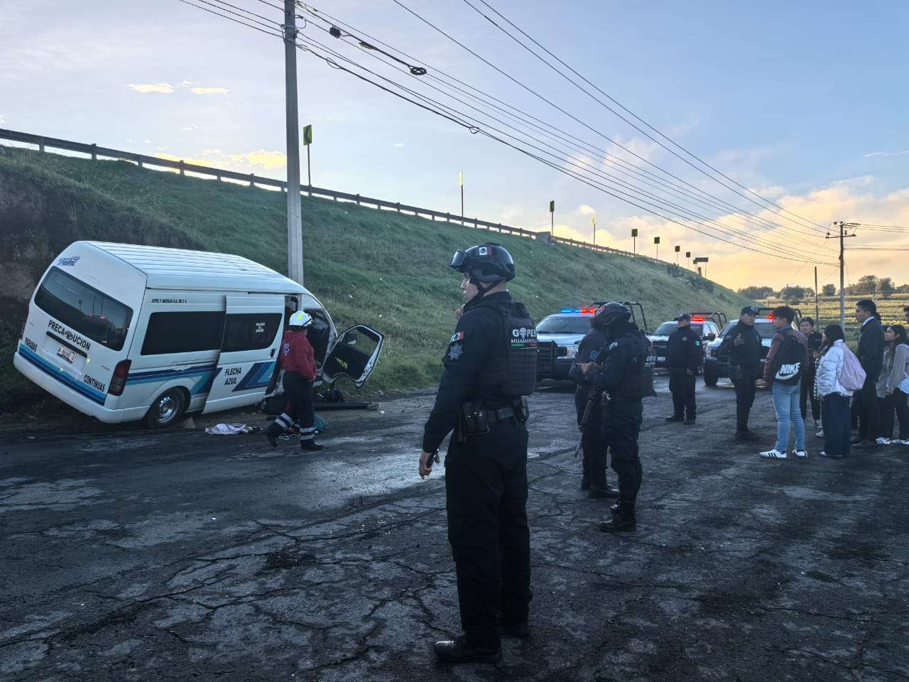 Los hechos ocurrieron la mañana de este miércoles, cuando se reportó al Servicio de Emergencias 9-1-1 el robo de una unidad de transporte público marca Toyota, tipo Hiace, color blanco con franjas azules, de la ruta Flecha Azul. La persona afectada señaló que fue amagada con un arma de fuego a la altura del municipio de Totolac, donde lo despojaron de la unidad para posteriormente huir con dirección a Huamantla.