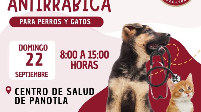 Esta actividad se realizará del 22 al 28 de septiembre de 2024, en el Centro de Salud de la cabecera municipal, en un horario de 8:00 a 15:00 horas, con apoyo de personal de la coordinación de la jurisdicción sanitaria, teniendo como objetivo vacunar a perros y gatos contra la rabia para beneficio de protección para la población.