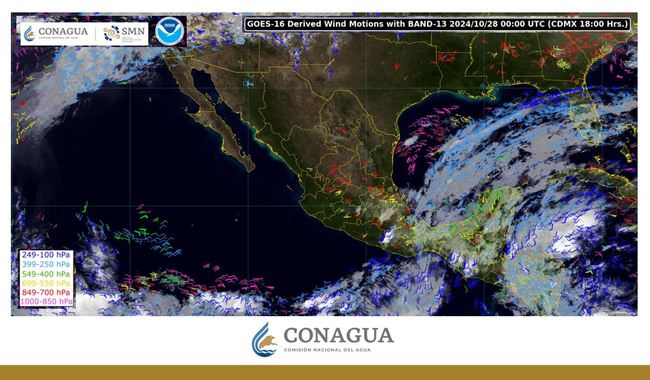 Las condiciones serán generadas por la onda tropical número 28 que se desplazará sobre el sur de la península de Yucatán y el sureste de la República Mexicana, una vaguada en niveles altos de la atmósfera y un canal de baja presión sobre el suroeste del golfo de México.