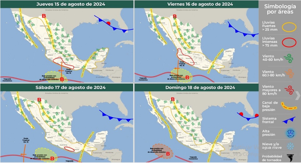 Lo mencionado se originará debido a la onda tropical número dieciséis, sobre el