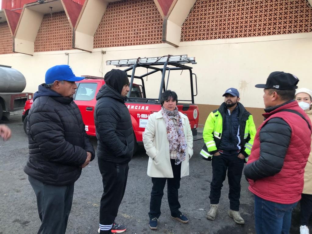 La presidenta municipal de Tlaxcala Maribel Pérez Arenas acudió al lugar y diálogo con los locatarios del mercado Emilio Sánchez Piedras, además de que giró las instrucciones al personal del Ayuntamiento para que se realicen las revisiones correspondientes.