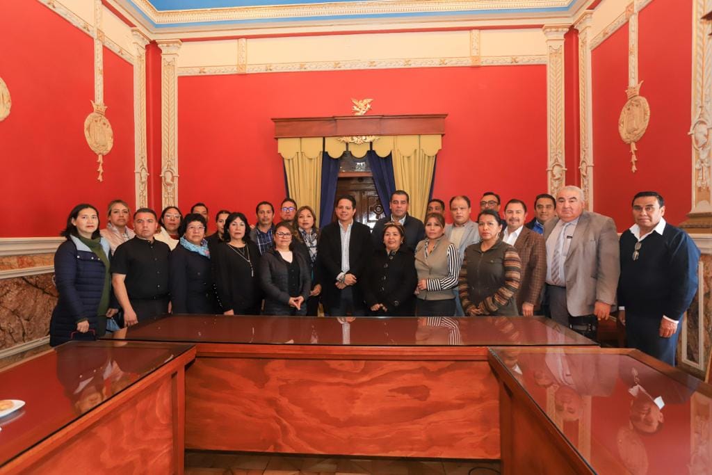 El titular de la Secretaría de Gobierno del estado (Segob), Luis Antonio Ramírez Hernández, recibió este jueves al Comité Ejecutivo del Sindicato de Trabajadores al Servicio de los Poderes, Municipios y Organismos Descentralizados del Estado de Tlaxcala “7 de mayo”, tras haber obtenido la toma de nota por parte del Tribunal de Conciliación y Arbitraje (TCyA).