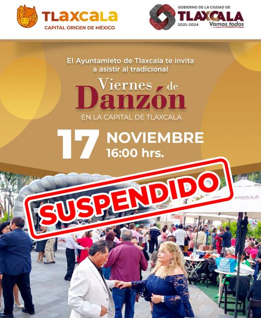 Por causas de fuerza mayor, el viernes de danzón de hoy queda suspendido en la capital. Sin embargo, ¡tenemos buenas noticias! El próximo viernes 24 de noviembre estaremos de regreso con nuestro baile tradicional a las 4:00 PM. ¡No te lo pierdas! #ViernesDeDanzón#TlaxcalaCapital