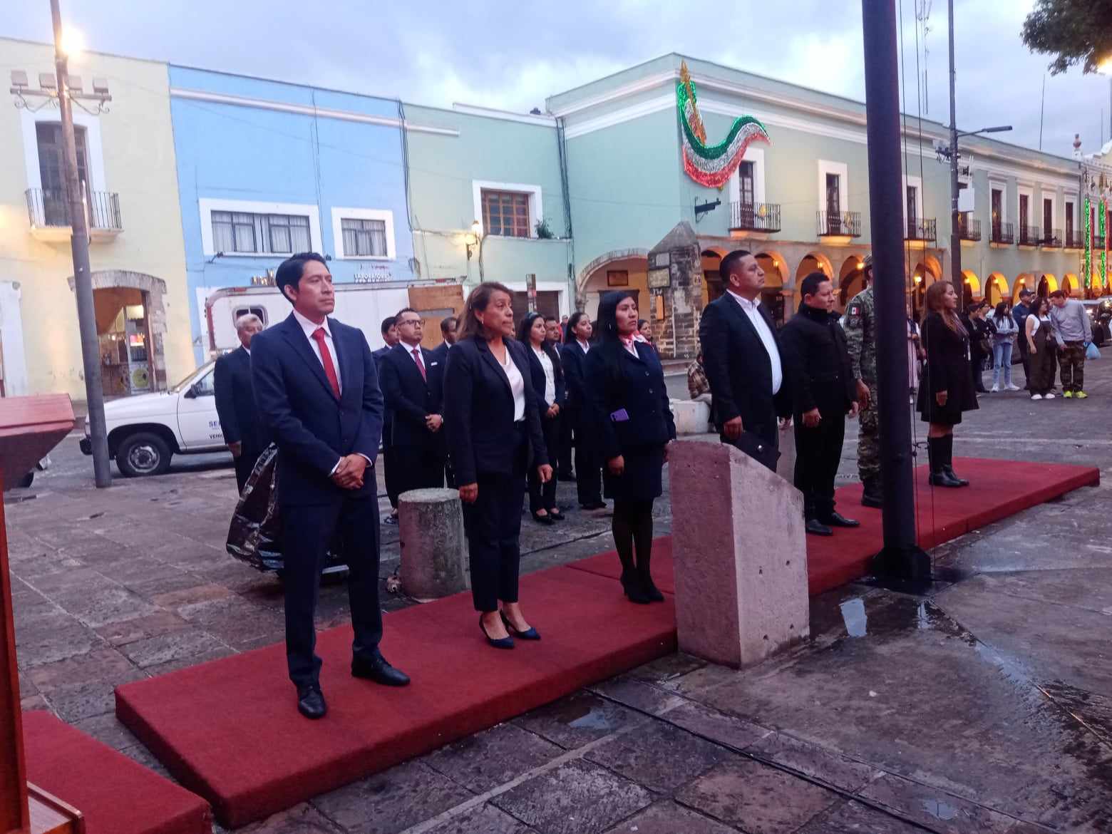 En el marco del CCXIV Aniversario de inicio de la lucha de Independencia de México, el H. Ayuntamiento de Teolocholco, encabezado por el presidente municipal Valentín Meléndez Tecuapacho y Neri León, titular de la Unidad de Inteligencia Patrimonial y Económica del Estado, rindieron honores a los Héroes que nos dieron Patria y Libertad en el Zócalo de la ciudad de Tlaxcala.