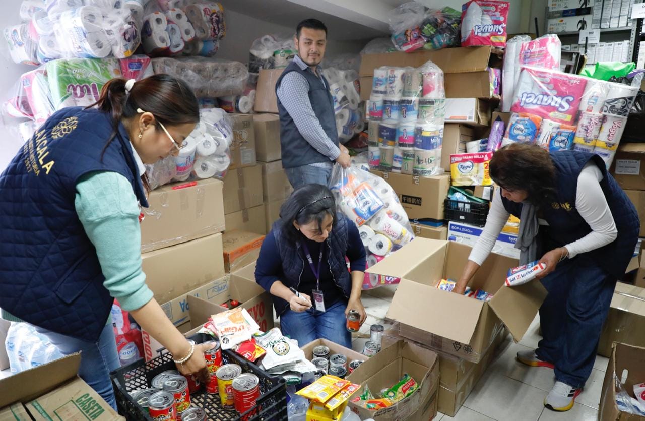 En un primer momento se mandó casi una tonelada de ayuda con productos como pastas, arroz, leche, azúcar, aceite, frijol, atún, avena, amaranto, lentejas, botellas de agua, jabones de barra, shampoo, desodorantes, pasta dental, jabón en polvo, botellas de cloro, paquetes de pañales, alimento para animales de compañía, entre otros insumos.